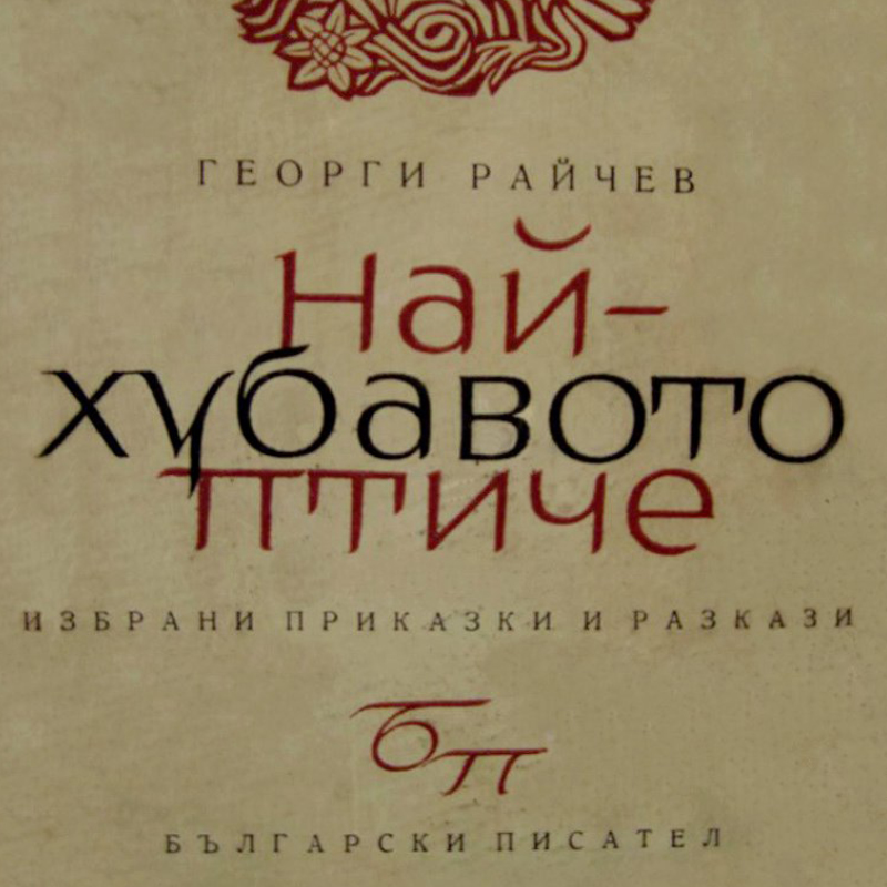 Георги Райчев. Най-хубавото птиче. София, 1962. Изд. Български писател. Приказки и разкази. Съставителство и редакция: Николай Янков. Редактор: Симеон Султанов. Художествен редактор: Магда Абазова. Технически редактор: Ветка Гуджунова. Коректор: Славка Иванова. Художник: Иван Кьосев. С ил. Печат: ДПК Димитър Благоев, София. Формат: 25 см. Тираж: 10 100 бр. Страници: 303 с.