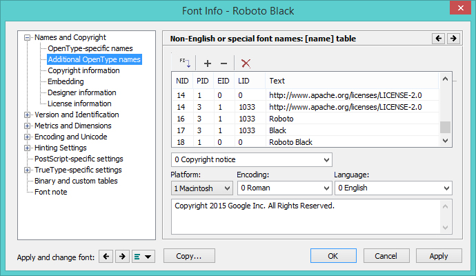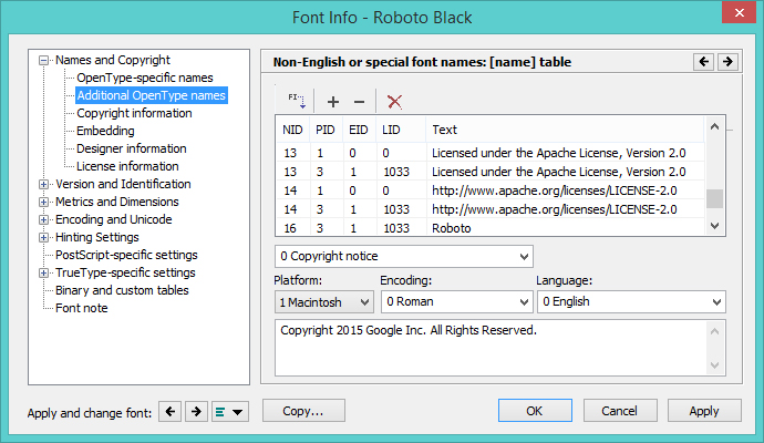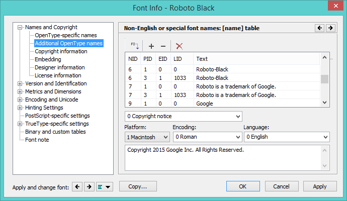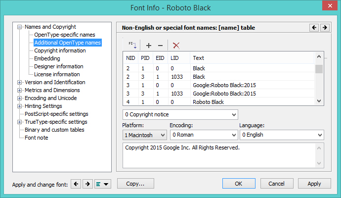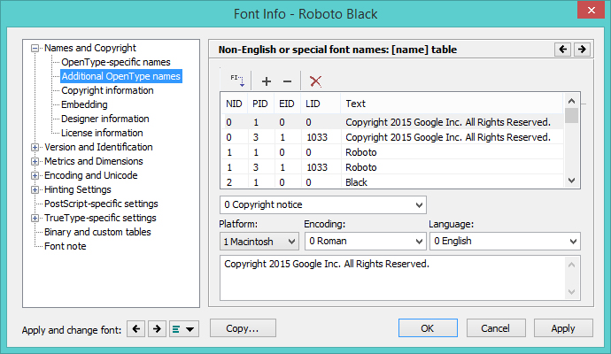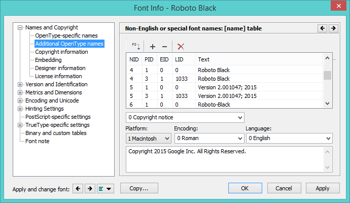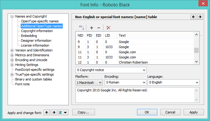 Source: Microsoft Typography: Naming Table