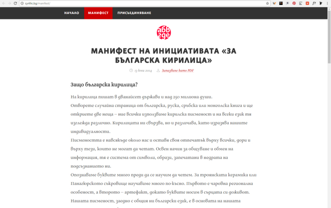 The Bulgarian form of the modern Cyrillic script on websites